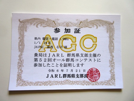 7月21日 ALL群馬コンテスト 1。9MHzバンド電信電話部門 1位入賞