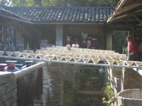 景徳鎮はまんなかを昌江が流れ周囲を山で囲まれた美しい街です。陶磁の都景徳鎮の街灯の柱は陶磁で統一されています。古窯瓷廠は明代の官窯であった窯です。なかに祐陶霊祠、風火仙師廟など陶磁にまつわる神を祠る建物もあります。