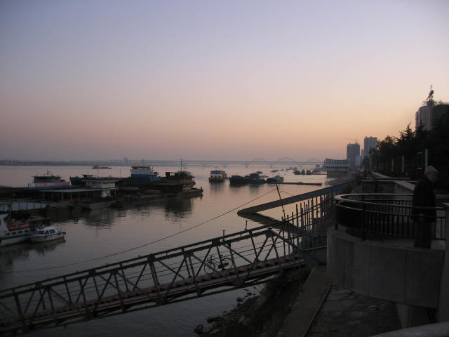 九江から長江を溯ると武漢、重慶に至り、また下ると南京、鎮江、上海に至る。これらの都市は長江という大動脈によって結ばれている。廬山の峰峰を遠くに望む九江市で最も印象に残ったものは暮れなずむハ陽湖に浮かんだ廬山のシルエットと早朝散歩した長江河岸の風景でした。