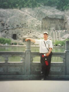 龍門石窟は洛陽市南郊外12.5キロメートル、伊河の中流を挟んで両岸に開けている。ここを最初に訪れたのは今から10年前の1996年12月であった。伊河にかかるアーチ橋の龍門橋、石窟の入り口の石門や河畔の柳並木は以前と変っていなかったが、今は広い駐車場が用意されショッピングセンターや電動バスなどが出来て大勢の観光客が受け入れ可能となっている。前回、12月のどんよりと曇った龍門は、今回は5月の日の光耀くもと、伊河水碧にして琵琶峰青く 春風に柳枝なびき白壁に仏窟無数。