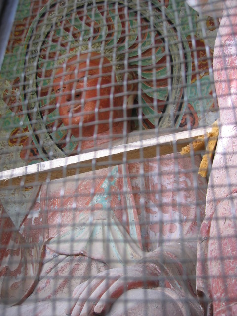 ここは壁画が描かれた窟龕が7つ並び、各々両側に菩薩を配した如来仏が真ん中に座している。