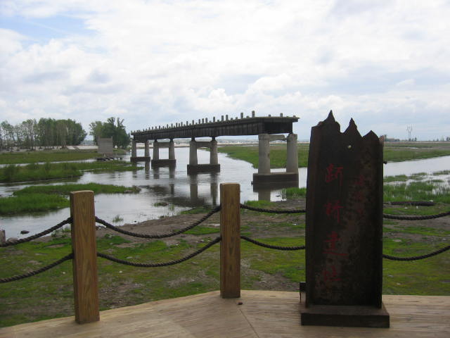 1945年8月7日関東軍はハイラル市内のの伊敏川にかかる伊敏橋?を爆破して撤退した。爆破した橋は断橋遺跡として残されている。