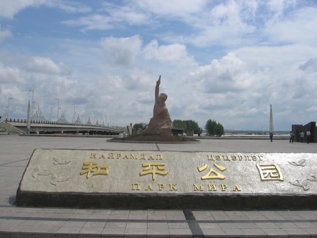 ソ連満州侵攻をイメージした像が平和公園のシンボル