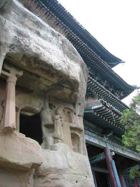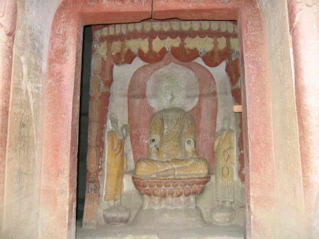 窟廊は小規模である。石刻で木造を模している。