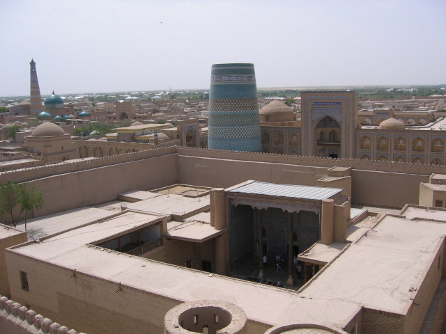イチャン・カラとは内部の城という意味で高さ7〜8メートル城壁で囲まれている。この城郭に宮殿、廟、モスク、メドレセ、ミナレットなどが建ち並んでいる。