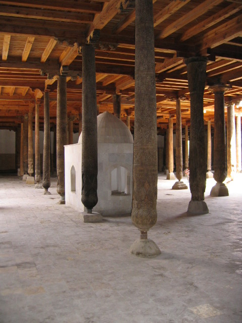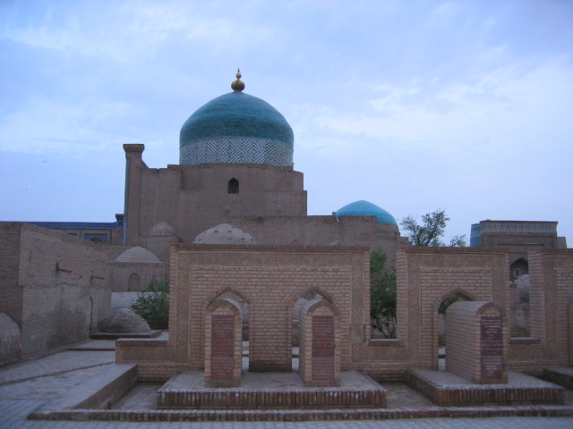 特徴のあるドームに詩人・哲学者・力士であったパフラヴァン・マフムード(1247〜1326)が埋葬されている。回りは共同墓地になっている。ウズベキスタンの墓は土葬であるが地面に埋めない。遺体は地上に横たえてその上を土やレンガで覆うそうである。やがて土の墓は風化し崩れその上に次の墓が作られる。時が過ぎると墓場は遺骨が積み重なっていくのだそうだ。