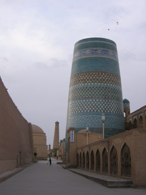 西門を入り右っ手にあるムハマド・アミン・ハン・メドレセ(神学校)と正面の発電所の煙突のようなカルタ・ミナール(低いミナレット)はムハマド・アミン・ハン(在位1845年〜1855年)によって建てられた。