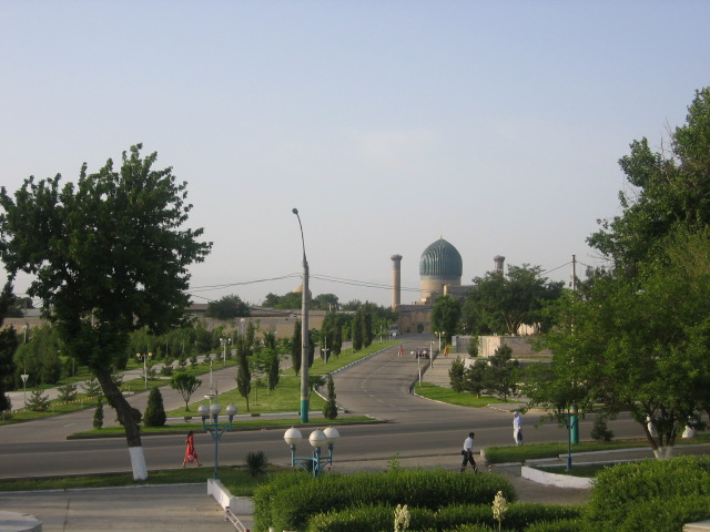 イスラム建築の原型をとどめるイスマイル・サマニ廟に正対する古木