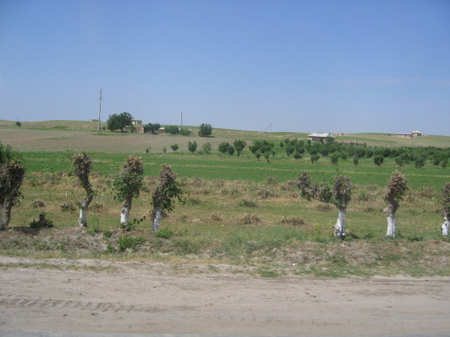 ウルゲンチからヒヴァまでトロリーバスが走っている。料金は700スムだそうだ。そんな街道をヒヴァに向けて走るバスのなか、ガイドからポフラ、ニレ、桑、柳と現地の木の種類について説明があった。その中に桑があったのは鉛筆で書き取ったメモの中でしか存在しなかった。