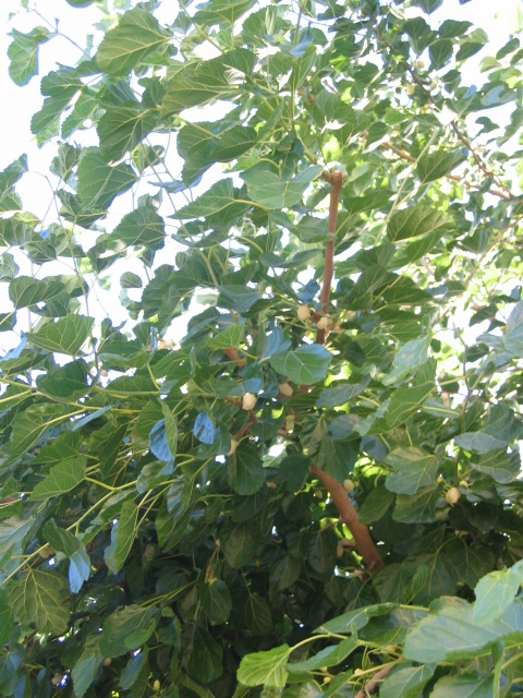 ウズベキスタンに入国して最初に桑を見たのはタシケントの国内線ターミナルの広場であった。ウルゲンチへ飛ぶ朝便のチェックインまで時間があったので広場へ出た。歩いていたら足元に何の実だか定かでなかったが指先ほどの白い実がいっぱい落ちていた。見上げると枝に実が鈴なりになっていた。手に取って何だろうかと見ていると男が近寄って来て口に入れろとジェスチャーで話し掛けてきた。ちょっと心配ではあったが思い切って口に入れると甘い味がした。これがウズベキスタンにおける桑との最初の出会いとウズベキスタン人との最初の会話となった。