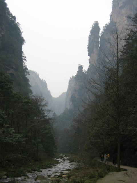 十里画廊は往復五キロの道程で奇岩奇峰を下から見上げるコースである。