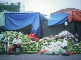 市内のバサールへ行った。午前中であるためか客はまだ疎らである。テントの店先に西瓜が山盛りに並べられ客を待っている。こんなたくさん売れるのかなとちょっと疑問に思った。