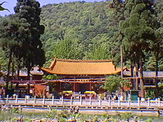 玉泉公園はこの地方の王である木氏が築いたものであるそうだ。玉龍雪山の伏流水が湧き出す 澄んだ黒龍池があり得月楼が湖面に姿を映していた。 池の辺の柳の緑と花壇の花々の色鮮やかさ、流れる風の心地良さと心和ませる公園である。 また、公園の一角にチベット族のラマ教の煌びやかな寺、福国寺五鳳楼があった。 納西族で説明をしなければならないものとして象形文字である東巴文字である。 最近まで東巴文字を使っていたという。公園の一角に東巴文字研究所もある。