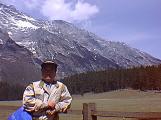 にあった。 写真を一緒に撮るとお金を請求されるしくみである。 日本であれば3000メートルもの高地には木立はないが、緯度が10度ほど下がると標高3200メートルの 雲彩坪は杉木立が茂り草原には馬が放たれていた。 小店が並びイ族の衣装をつけた女達がたむろして客を待っていた。 牧場の向うでは3200メートルの高度を何者ともせず