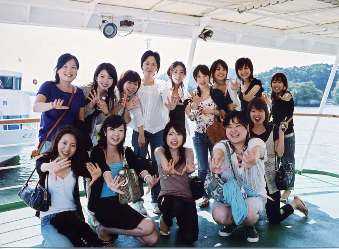 松島遊覧の船の上。これで全員ではありません。下の船室に何人かいます。