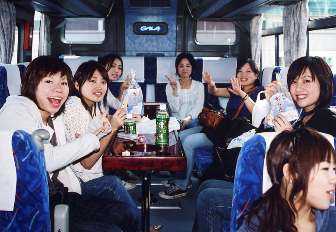 これはバスの中。サロンもあります。お酒でなくお茶で乾杯。