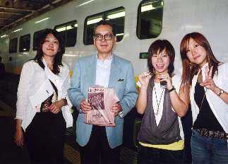 往復は新幹線。2階建てのMAXです。先生が手にしているのは、牛タンです。