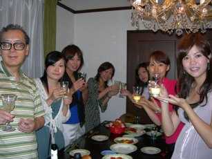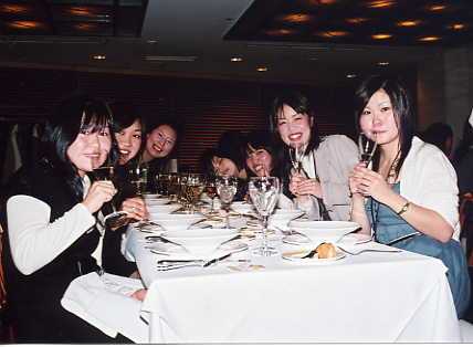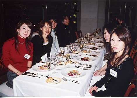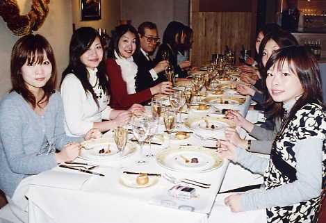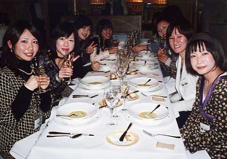 まずは乾杯です。管理の学生さんは特別授業に出ているので、まだ来ていません。右上のシャンデリアがご自慢。