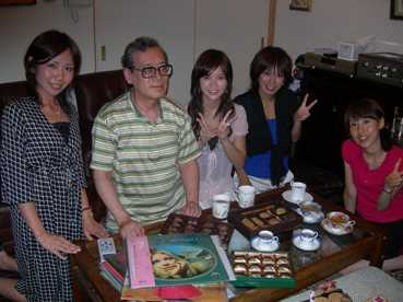 デザート 学生さんの持ち寄りで、手作りケーキ、チョコレート、クラッカー、長崎カステラなど