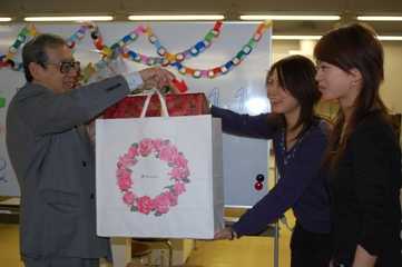 プレゼントもいただきました。中身は椅子に敷くクッションです。ちゃんとサイズを測ったそうです。