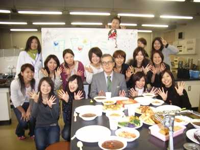 センターは、料理長です。本学に非常勤で実習のお願いもしています。皆さん、いつもよりもドレスアップしています。