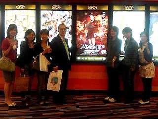 映画館の入り口です。先生が手に持っているのは、プログラムです。