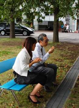 食事の後に、外苑の銀杏並木を散策。奥が絵画館です。日曜は歩行者天国となっています。