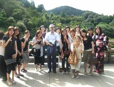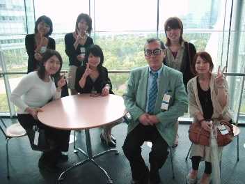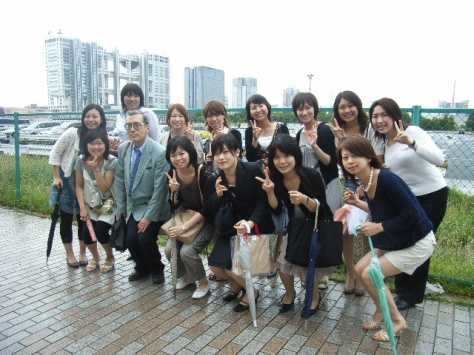 バックは、フジテレビ本社。お台場の名所です。今年のゼミ生さんは晴れ女が多いので、傘がいりません。