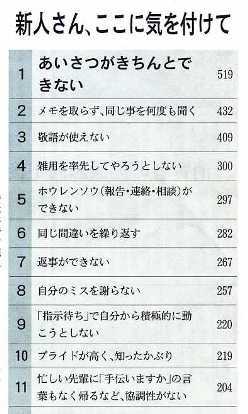 追出しコンパの折に、助手さんが、皆さんを誉めましたが、あれは、あくまでも学生としての誉め言葉ですから、社会では通じるものではありません。上の記事を参考にして、立派な社会人となってください。