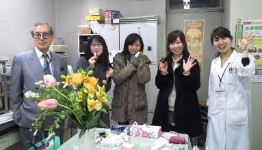 今日は、食物科学専攻の学位授与式.授与式が終わってからゼミの学生さんが続々、研究室に来ました.卒業記念の品をお渡ししました.大歓声です.記念写真を撮ってから、三々五々研究室を後にしました.