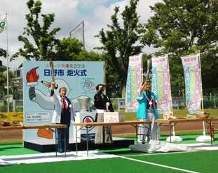 日曜なのに、日野までお出かけ.秋に多摩地区で開催される国民体育大会の日野市の炬火式があるためです.市民競技場で行なわれます.来賓は、市長、市議会議員など、選挙活動目当て(?)の方ばかり.式は、小学生が太古の火起こしでたいまつに着火します.