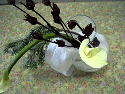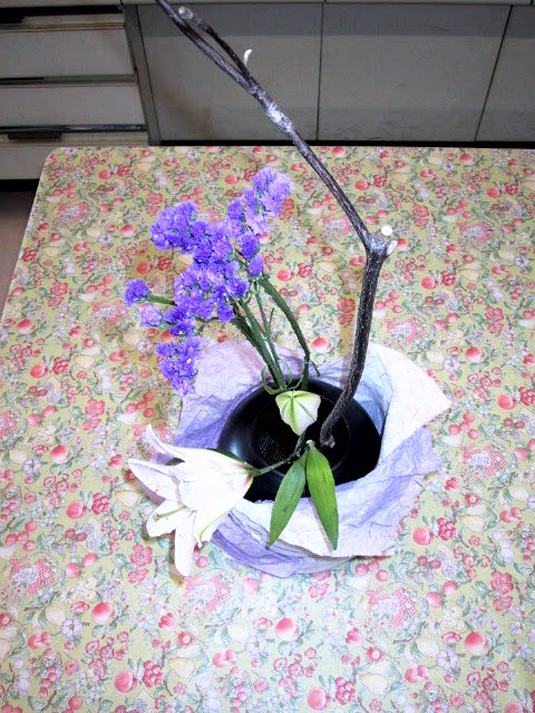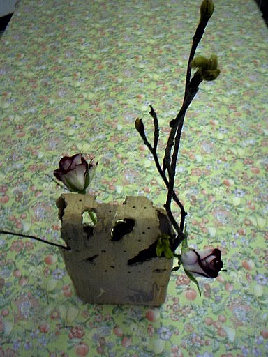 次のは、同じ日に研究室用(?)に生けたものです。かなり大ぶりで写真がはみ出しています。