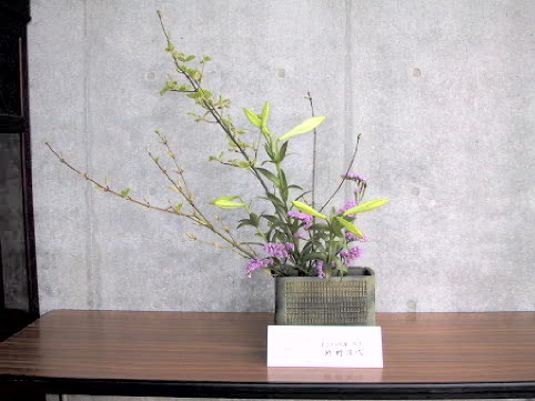 次ぎが、学内の香雪記念館に展示された作品です。百合の花が充分に開花していないので、少しさびしいですが、開花すると映えます。