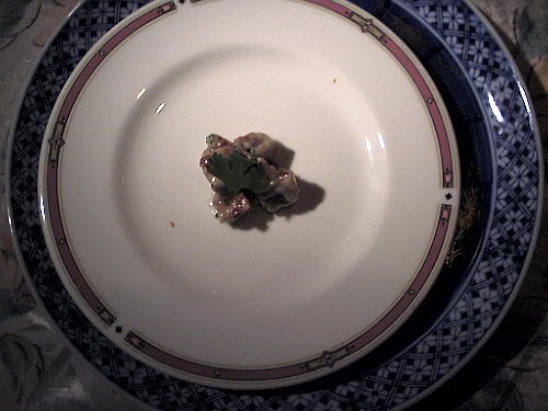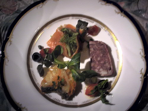 3種類のオードブルです 自家製スモークサーモン、テリーヌ、酢漬けこれらにハーブがたっぷりです