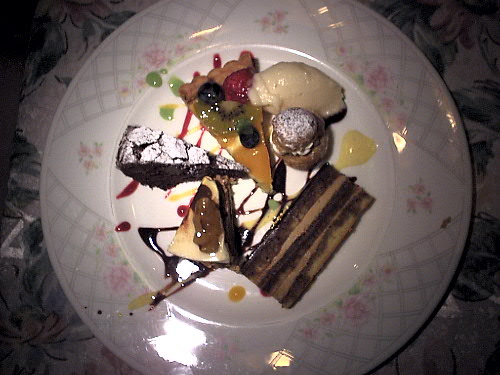 デザートです 10種類くらいからチョイスします 右上にシャーベットとシュークリームが見えます