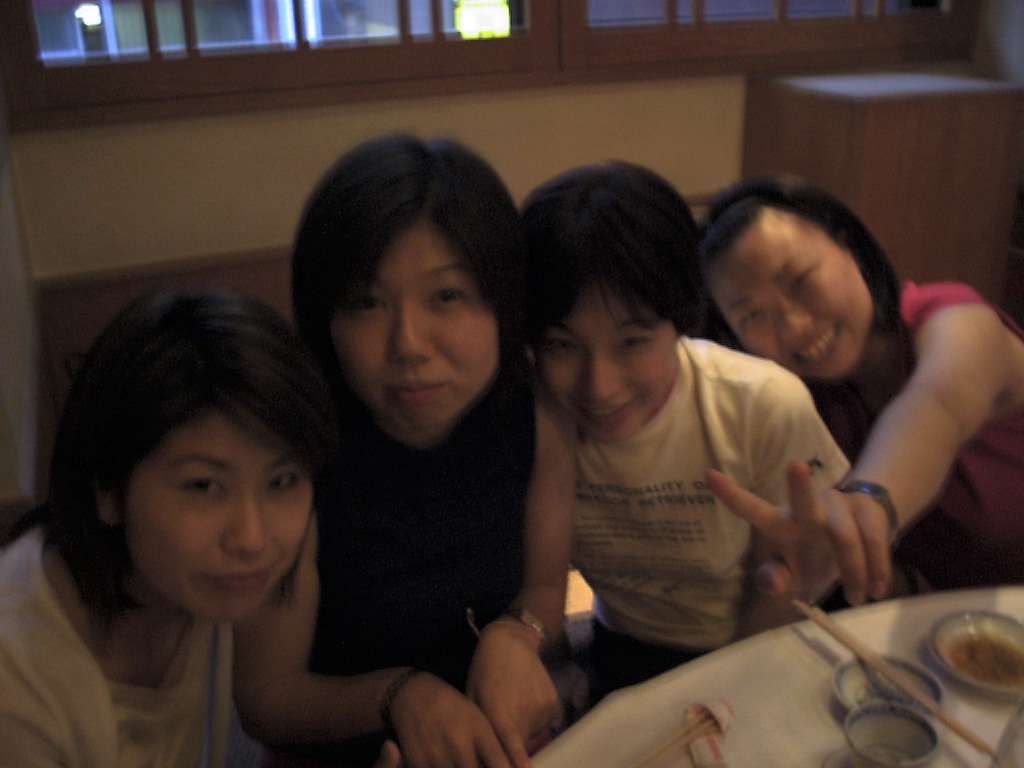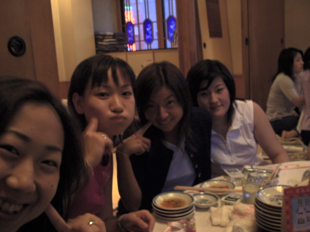 杏仁豆腐は稲葉さんが自宅でつくって自転車で運んできました。ケーキは酒井さんの手作りです。 四谷ラインガウにて。 3年生と4年生との合同コンパです 毎年雨なのですが今年はよい天気でした。記録写真はこちらをクリック。 2月2日に食事会をしました。田島さんと助手さんと学生さん8人の合計10人が楽しみました。場所は渋谷のシャンドマルスというフレンチレストランです。山口智子主演の王様のレストランの元となったお店で、シェフの方の昔話が聞けました。 料理の記録はこちらをクリック。 記録係さんにVTRどりをしてもらいました。夏の旅行と合せて編集する予定です。 とりあえず、その一こまをお見せします。ビデオ画面をデジカメで撮影したものですのでちょっとぼけています。 でも皆さん楽しそうですね