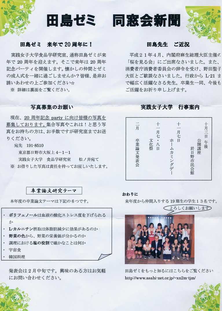 | 1999年度同窓会の記録 今年の同窓会が以下のように行われました。新しい会場で気分も新たに、タヒチ料理を楽しみました。 ご感想をメールでください。 |