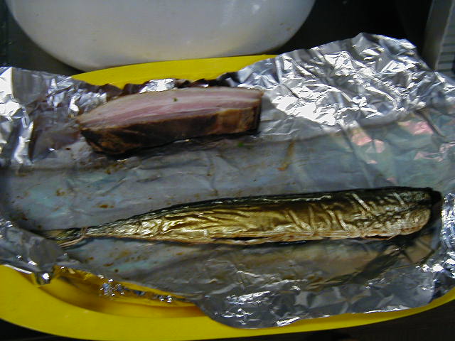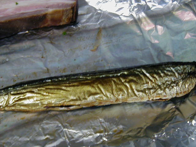 秋!といえばサンマ。我が家では毎年大船渡からの直送サンマを頼みます。店頭に1匹150円のサンマが並ぶ頃、発泡スチロールに入った丸々としたウマイ奴がやってくるのです。いつもは塩焼き、刺身、煮サンマなどなどで楽しみますが今年は燻製にも挑戦してみました。といっても突然の思いつきだったために、本などを見るヒマもなく・・・・すべて適当アバウトでつくってみたのです。いたって簡単シンプルに。頭をとって内臓をとって、一晩塩水につけて燻製!!!あとで本を読むと、砂糖やら色々なスパイスやら、そりゃもうめんどくさい手順がいっぱいでした。だいたい2時間程薫煙したでしょうか、完成したのは黄金色にピカピカ輝くサンマ!!かるーくあぶって、パリッとした皮を破ると・・・じゅわっとアブラが出てきて、その身はホロッと舌の上でくずれます。うーん美味美味美味。ご飯がすすみます。