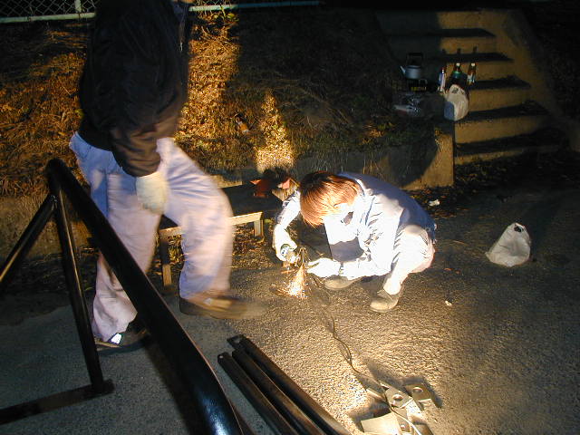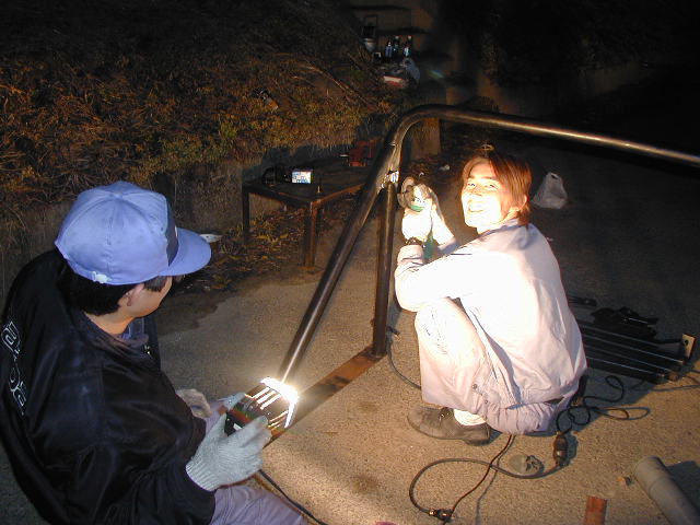 所長が現合にて溶接しています。 |