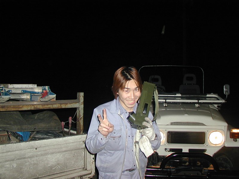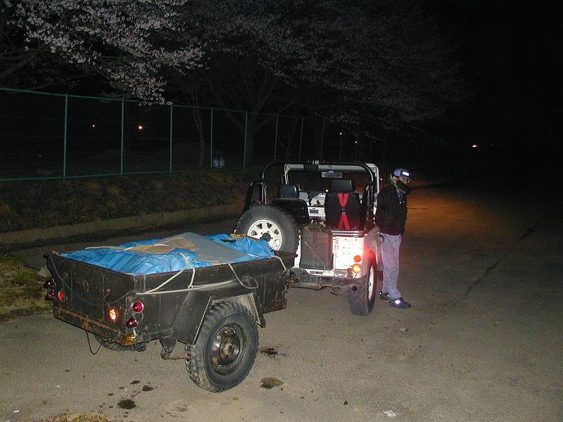 なにかとイワク付きのJeep トレーラーを連結し、どこかへ連絡している