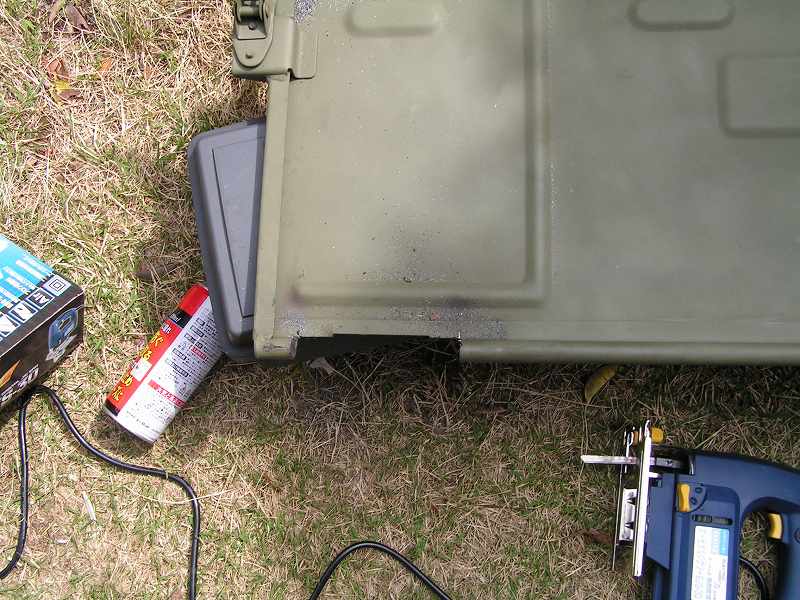 \3000で購入したジグソーでヒンジ+α丸ごと切り落とします。