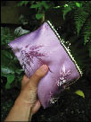Recycling fabrics from discarded kimono and obi, she is making purses, bags, and other items. Working mostly during those times when her two boys are asleep, she has created a very attractive line of items, and has started to develop a clientele for these asian-influenced accessories.