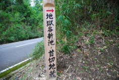 地獄谷への道の入り口には小さな駐車場があり。2台ほど駐めていた。いきなりの上り坂で道は地獄谷へと向かっている。左右は急な崖である。地獄谷というのにふさわしい道である。