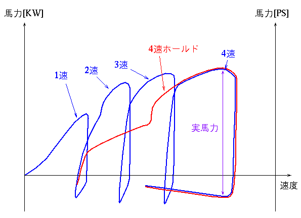 やっぱりオートマはスリップロスが大きいですね。それにしても、S-maticの シフトチェンジは速いですね。これで5速があれば・・・