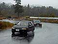 雨の中の各車の挙動を見ていると、やっぱりFRはかなりコントロールが難しそうでした。スカイラインとかMR-Sは、アクセル踏むたびにリアが暴れて、クルクル回ってる車も多かったですね。逆に、インプレッサとかランエボ等の4WD車は、かなり安定しているように見えました。それに、速い!