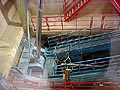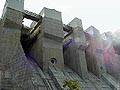 放水ゲート。 縦に走ってるシャフトの上にでっかい油圧シリンダがあって、その力でゲートを引き上げることによって放水するそうです。 |