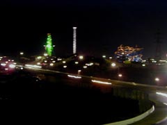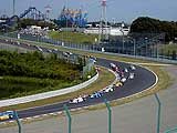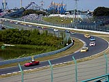 1コーナー付近のスタンドから見ると、ちょうどホームストレートの向こうにサーキットランドの観覧車等が見えます。