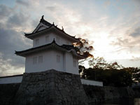 外堀をでてみたら、ちょうど櫓の背景に夕焼けが。。。