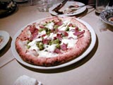 | マルゲリータインテグラーレ | 左奥が蛸のトマト煮とル−コラ和え、右手前が牛肉のインパナ−テ(香草パン粉焼き) | 白身魚薪窯焼きのカラブレ−ゼ |