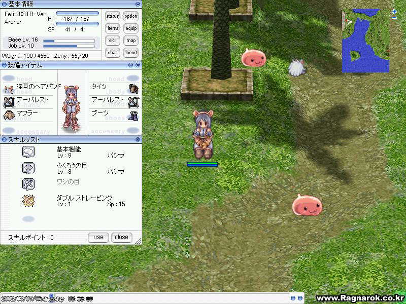 β1最終日に撮ったアーチャーの最終ステータスです。低LVにもかかわらずアーバレストやタイツが装備出来ました。